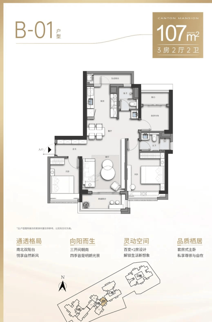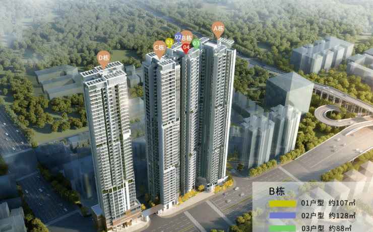 【新品户型】 A栋产品:约82-120㎡三房至四房,三梯五户 B栋产品:约84-128㎡三房至四房,三梯四户