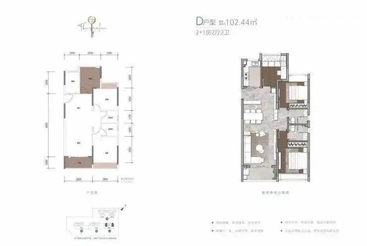 3栋17层,两梯四户,户型为69㎡两房一卫及102㎡三房两卫;