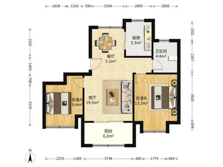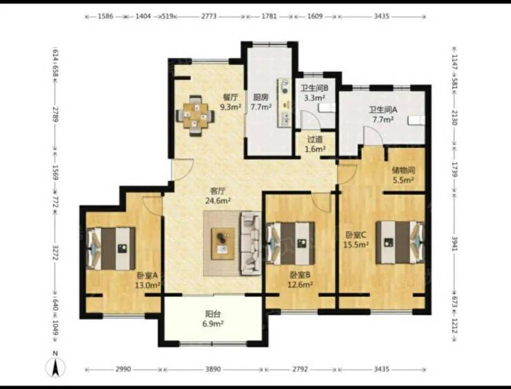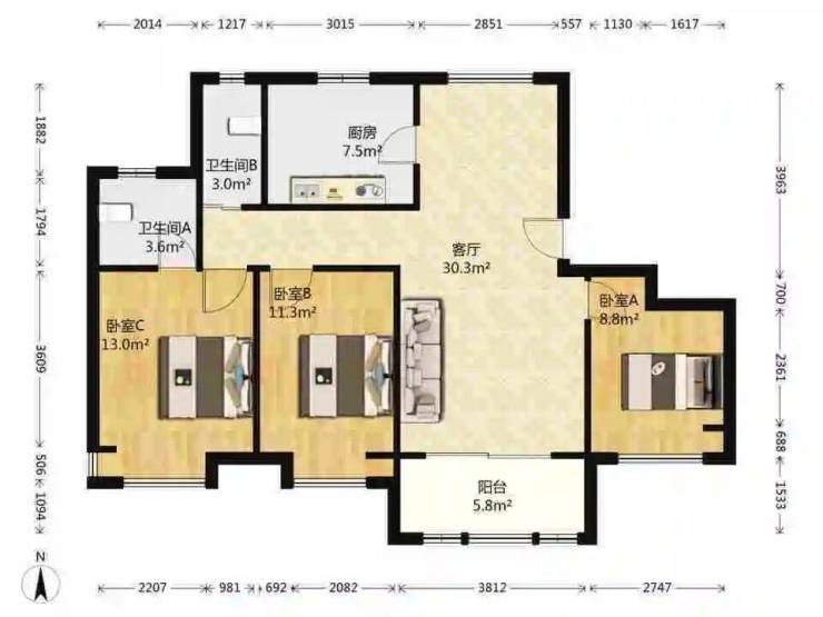2.卧室全朝南无北房设计,让每个卧室都充满阳光;