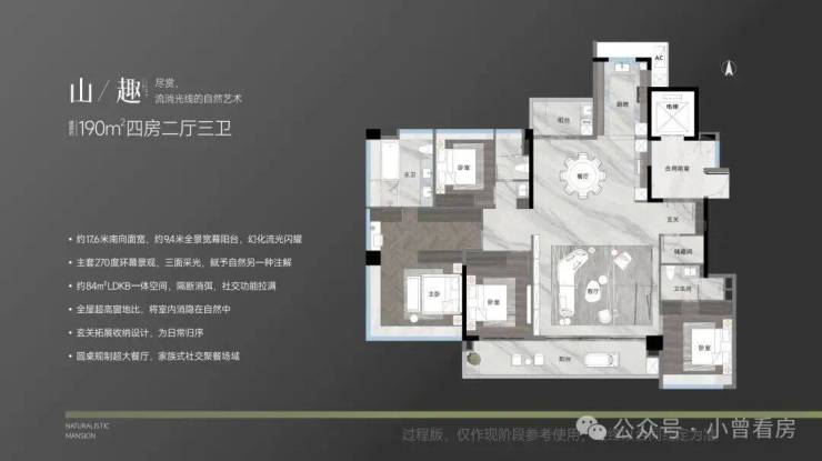 约17米南向面宽,全屋超高窗地比,全南向功能房,主套约270度IMAX级环幕视野