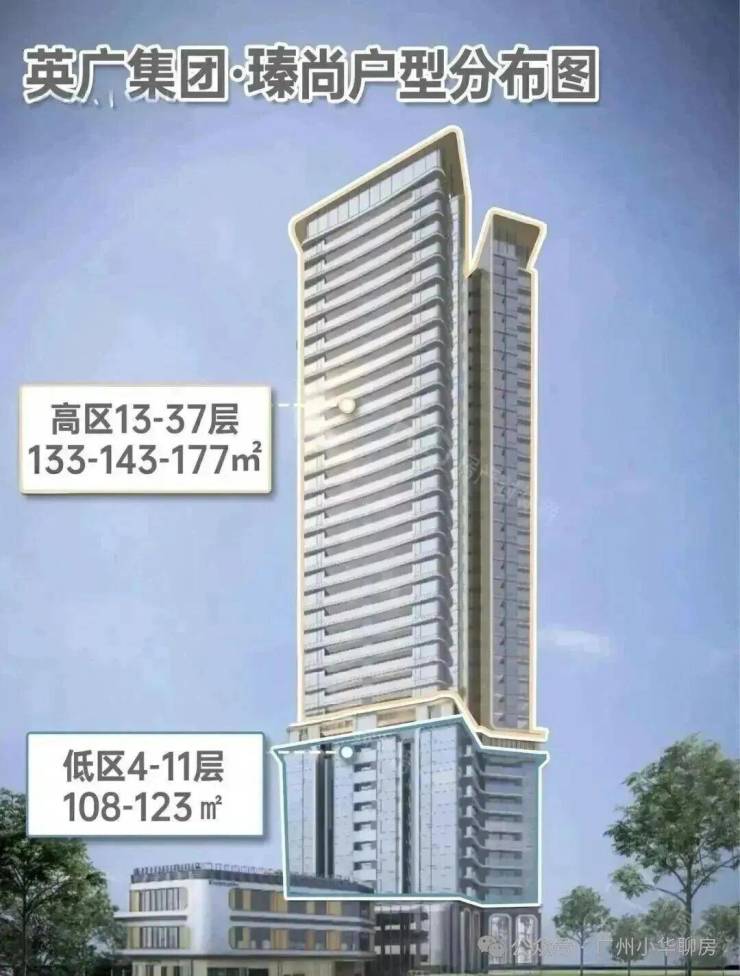 高区13-37层,约144户,主推建面约133-143-177㎡四房,专为高端改善人群量身定制。