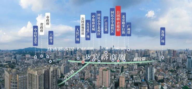 君熙府近揽北京路商圈,北京路商圈汇聚北京路步行街、广百百货、北京路天河城等多个大型商业中心,是广州历史上最繁华的商业集散地,醇熟生活举步即享。