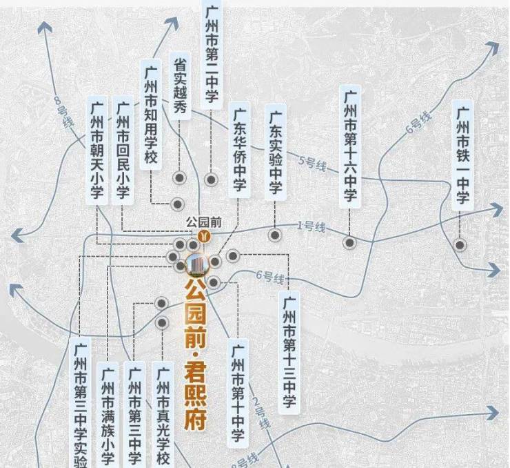 君熙府距离地铁1/2号线交汇点公园前站仅约400米,相邻解放路和中山路,快速接驳东风路和内环路等,快速直达天河、海珠、荔湾等各区核心。