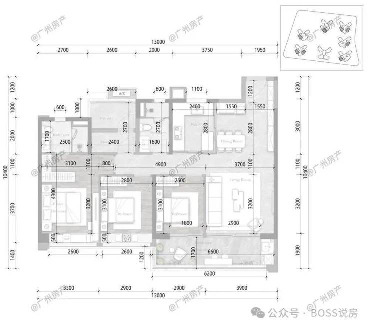 最后还有一个7栋楼王户型是180㎡四房,大家可以欣赏一下!