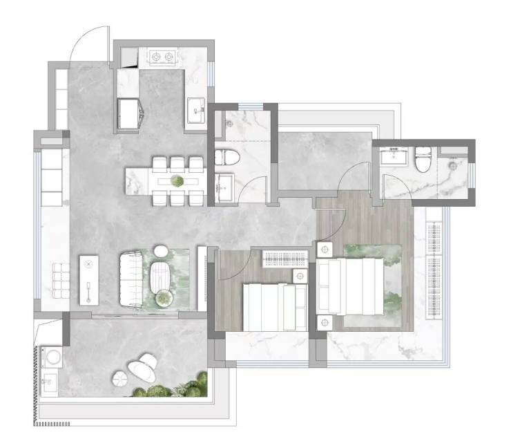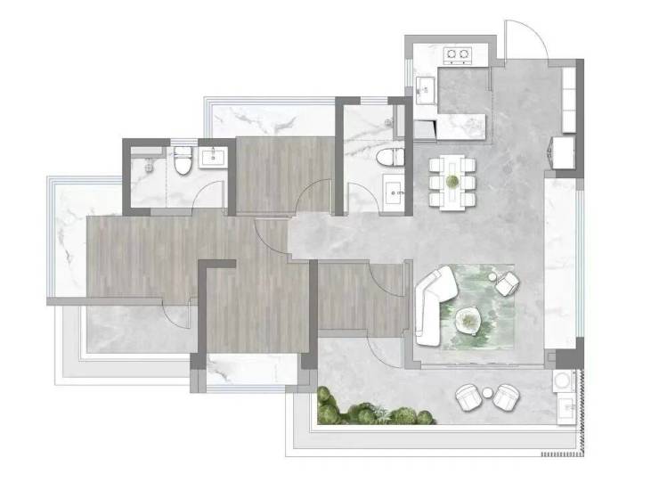 99平户型四开间朝南,没有做阳改房,而是实实在在地做到了真四房,不并非“3+1”房。从这个角度看,中建还是很实在的。