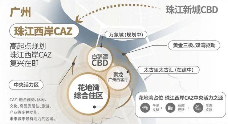 随着白鹅潭的开发,花地湾将与聚龙湾共同形成珠江西岸CAZ黄金三极,未来区域升值潜力巨大。