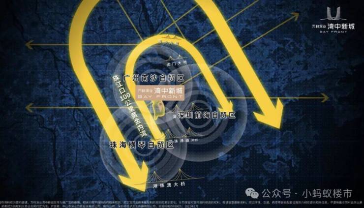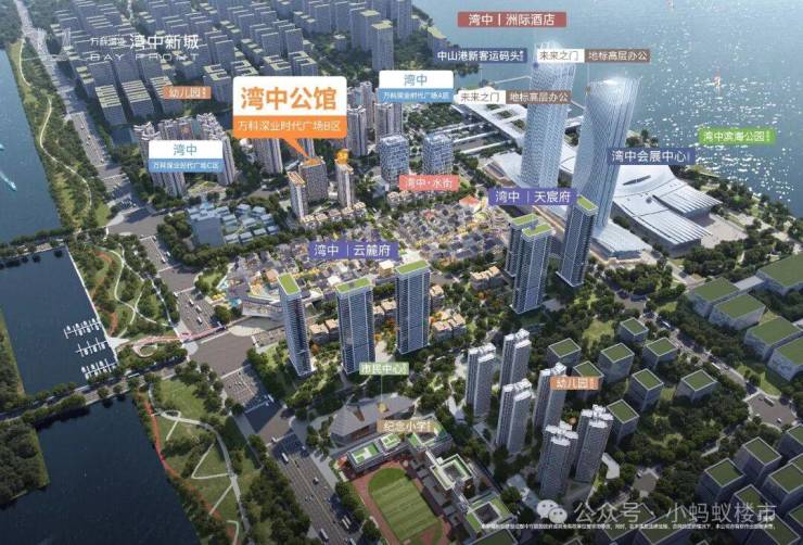 【项 目 配 套】:万科湾中新城-约175万方国际滨海地标大城,项目规划约70%的商办体量,涵盖八大业态,打造成政商文旅住等世界级湾区地标综合体。
