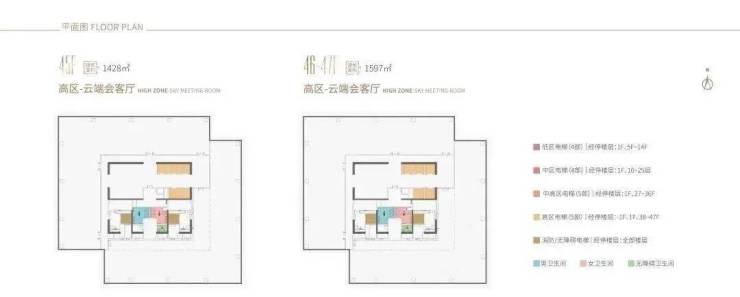 企业会客厅:38-44F:338-479㎡45-47F:1,427-1,596㎡(整层)