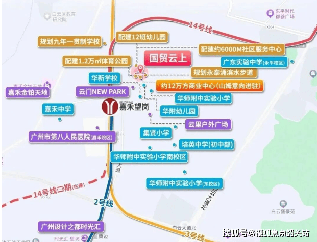 交通便捷性是国贸云上的核心竞争力之一。项目距嘉禾望岗地铁站仅约600米,步行约8分钟即可抵达——这里是广州罕见的四线换乘枢纽(2号线、3号线、14号线及14号线二期),无论前往珠江新城、天河CBD、广州东站还是从化、增城等外围区域,都能高效接驳。自驾出行同样便利,空港大道、鹤龙二路、华南快速等主干道环绕,快速连接机场、火车站及城市核心区。对于双职工家庭或高频通勤族而言,这样的交通配置极大节省时间成本。更关键的是,TOD模式带来的不仅是出行便利,更是人流、商业与服务的高度聚合,为居住体验注入持续活力。