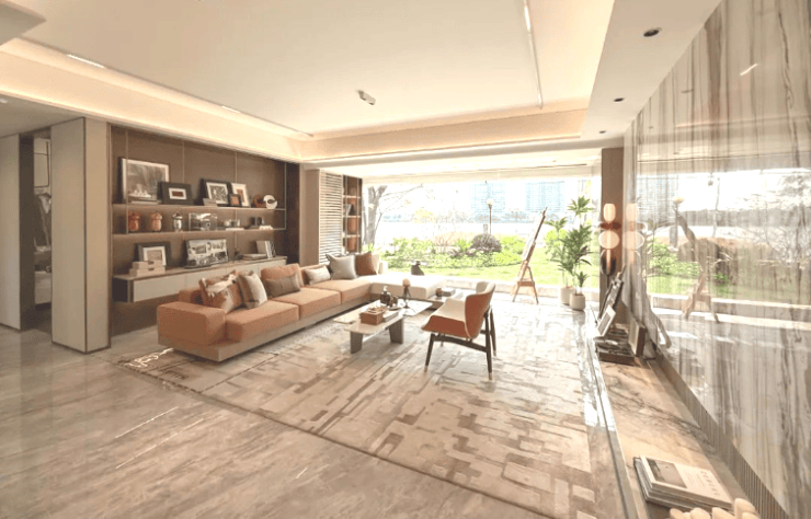 通过巨幕阳台等设计,项目将壮阔江景无缝接入生活日常——清晨,江面波光为生活拉开序幕;傍晚,归家即成观景,落日与流水共长天一色。