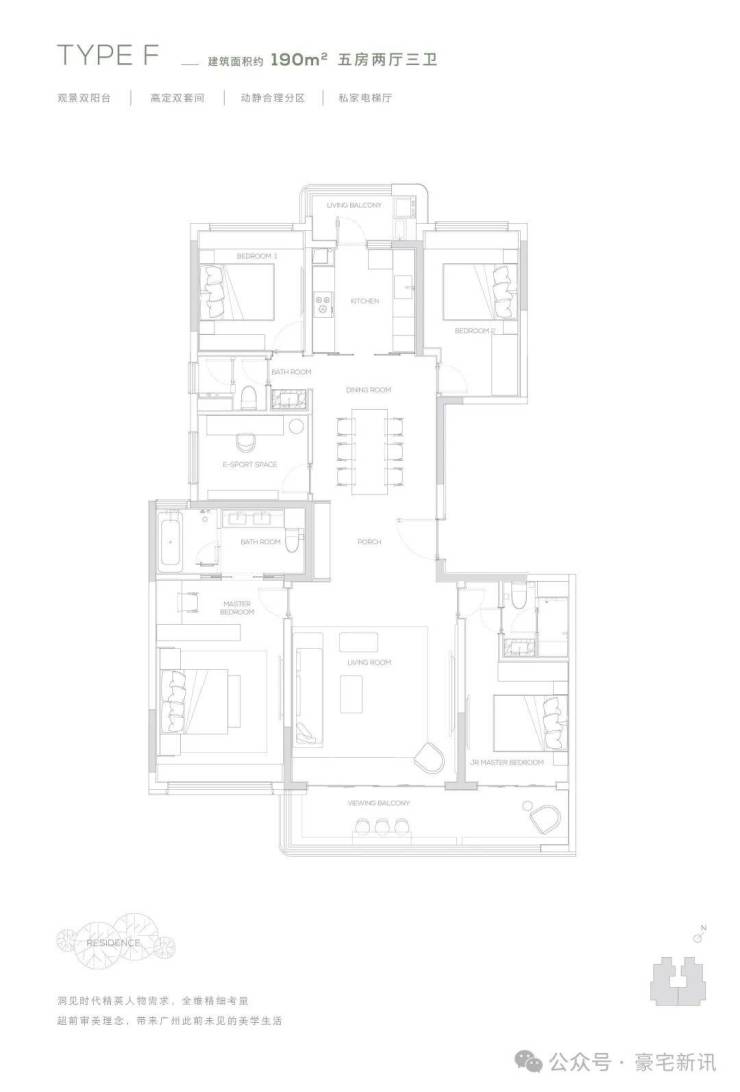 【190㎡双阳台户型】观景双阳台-高定双套间-私家电梯厅-双洄游动线