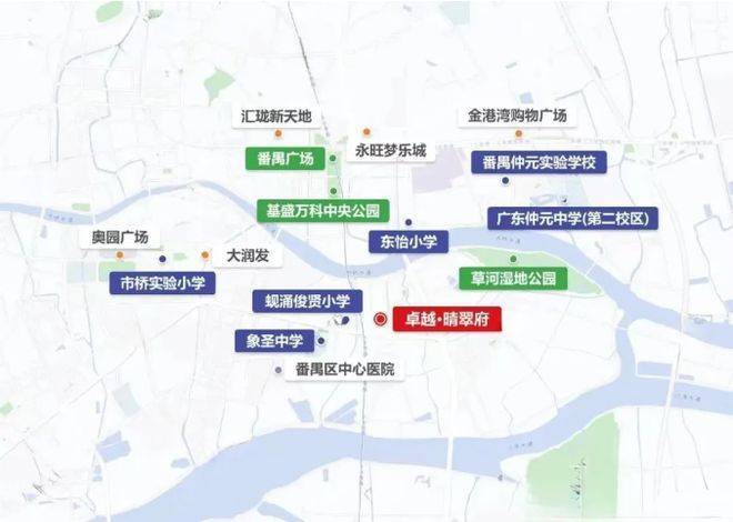 教育资源是卓越・晴翠府的一大亮点。家门口两所学校,市桥实验小学蚬涌俊贤学校步行约 300 米,桥城中学集团象圣学校步行距离约 600 米。市桥实验小学作为广州市一级学校,教学质量优秀,师资力量雄厚,多次荣获市、区级奖励。桥城中学更是成绩卓越,毕业班中考成绩连续 16 年荣获番禺区公办学校第一名,连续 16 年获番禺区初中毕业班工作一等奖,连续 8 年获番禺区中小学办学绩效评比第 1 名,为孩子提供了从小学到中学的优质教育保障,解决家长后顾之忧。