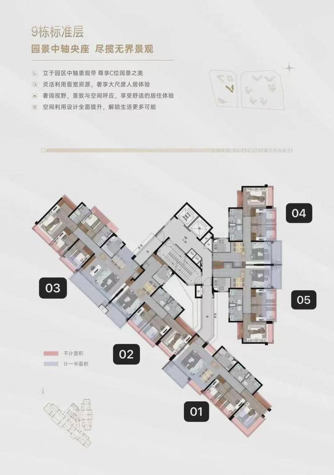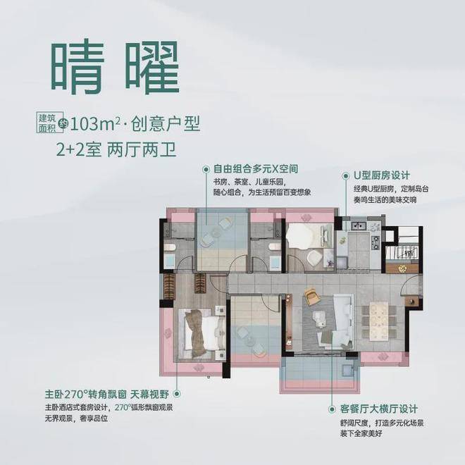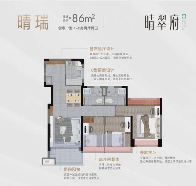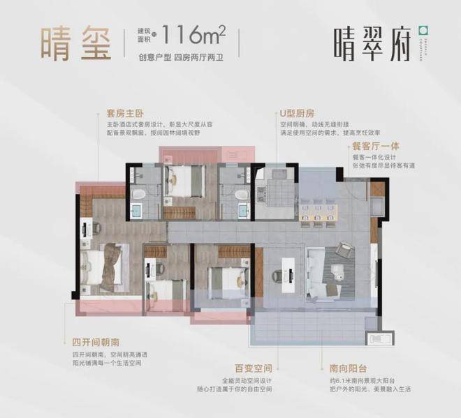 卓越・晴翠府户型建面约 76 - 130㎡三至四房宽景臻品。为确保采光和楼间距,楼栋以 V 字型、蝶型、枪型呈现,不规则排布最大化楼间距,最小化视线干扰。76㎡户型布局精巧,功能齐全,满足小家庭需求;86 - 89㎡户型空间利用合理,可能设置宽敞阳台,增加采光与观景视野;116㎡户型通常会有更开阔的客厅和卧室,可能配备独立书房或衣帽间,提升居住舒适度;130㎡户型则注重空间的奢阔感,多房间设计满足家庭不同需求,为改善型购房者提供高品质居住选择。