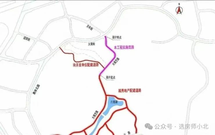 早在5月11日,官方就发布了聆湖路施工总承包公开招标,施工总工期为127天,也就是4个月左右完工。道路全长约418米,南接黄云路地块越秀地产配建道路,北止于大观街,道路等级为城市支路,规划红线宽20米,双向两车道。