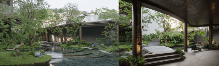 以“山河印”为设计主题,依据地形特性定制打造1.8万㎡立体山水园林,缔造七重立体山水景观,同时尽享高差近5m瀑布水景,成就城央难能可贵的山涧立体大境。