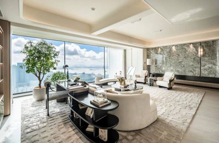 不仅如此,这里几乎户户有景,进来一眼就能望到眼前宽阔的江面,像一幅巨画镶嵌在客厅。
