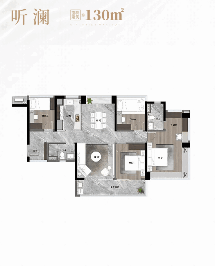 建面约143平,星级酒店式主套做到三面采光,面积达约28平!
