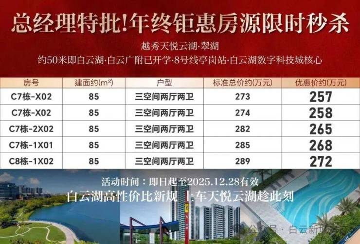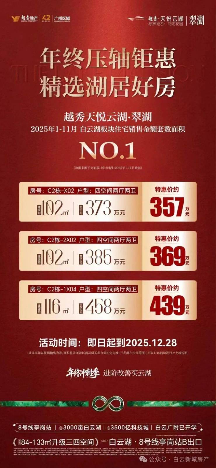 ⭕限时专属礼遇:即日起,提前1天通过越秀天悦云湖开发商官方售楼处热线400-8028-628预约看房的前30组客户,可享额外购房优惠(具体政策由现场销售解读)。