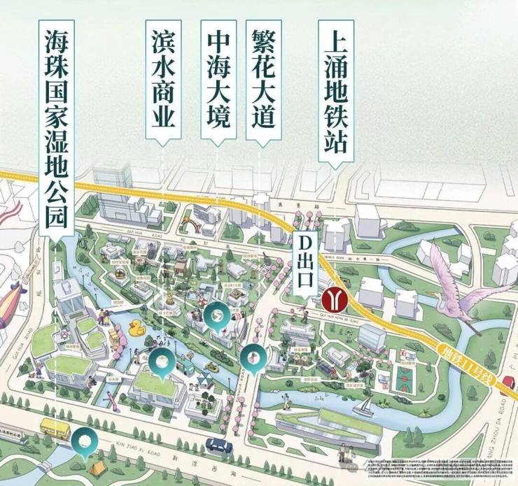 3、交通方便,拥有大环线地铁11号线上涌站和逸景路站上盖,东邻广州大道,南邻新滘西路,路网出行均衡便利;