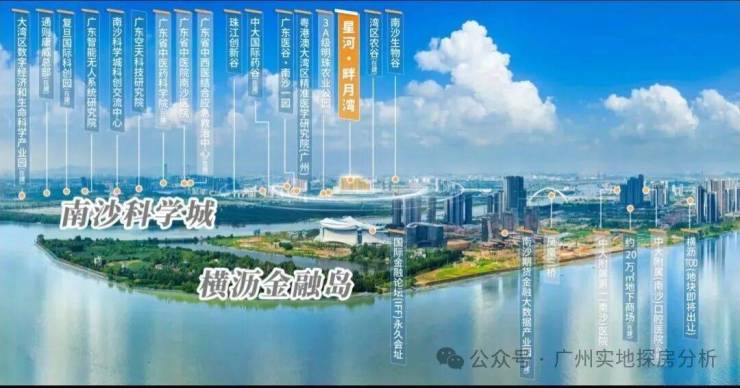 星河畔月湾位于明珠湾区,国际金融岛、南沙枢纽TOD枢纽交汇,属于万顷沙板块,与横沥岛隔江相望。