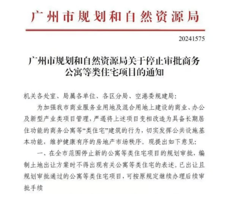 广州停止审批新增公寓等类住宅项目,只此少数席,卖一套少一套,且藏且珍惜。