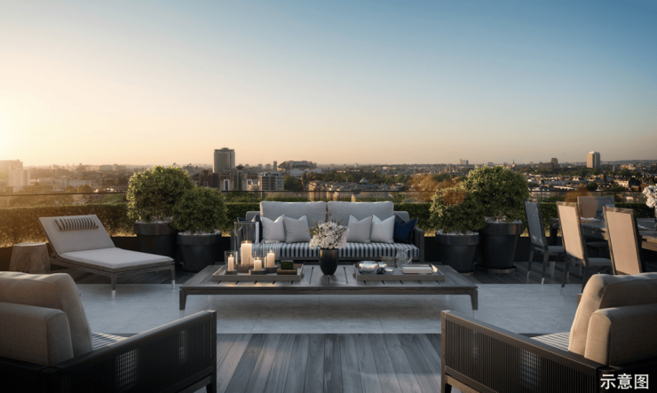 阳光露台,日照充沛,清风自来,露台上极目视野,对弈品茗,怡然自得。
