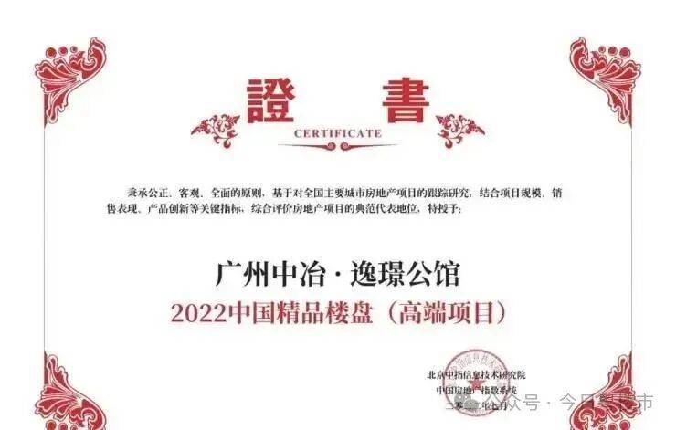 中冶·逸璟公馆从拿地到开发,出生便载誉而来,其所在的地块是当年海珠的楼面最高价,开盘后刷新区域一手豪宅的售价,同时荣膺“2022中国精品楼盘TOP1(高端项目)”。项目仅有48套,并且是广州目前仅有的一手城芯院墅。