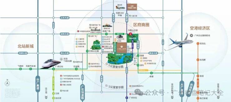 项目位于花都区府中轴线上,媲美广州的珠江新城。同时受空港经济区+广州北站“两大空铁联运”综合枢纽的双重辐射。