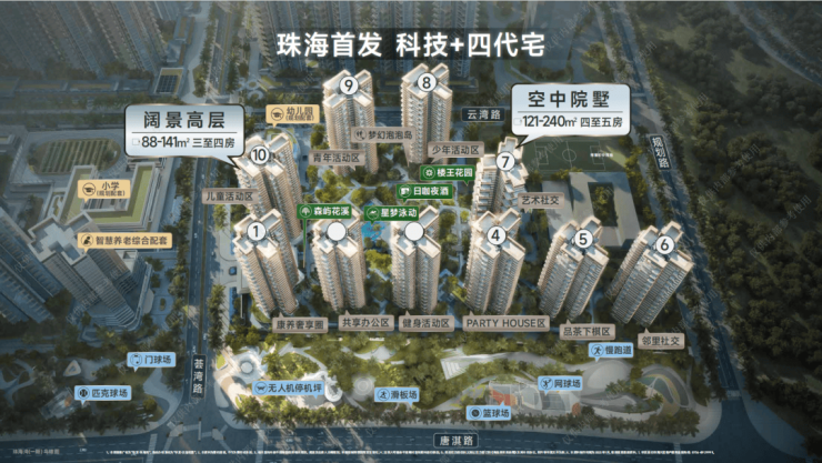 华发·珠海湾秉持“四方面十五优”产品标准,打造集“超级舒适、超级智慧、超级绿色、超级安全”的“华发科技+新一代好房子”,深度融合低空经济、机器人应用、绿色建筑等产业生态,同时依托滨海景观资源与智慧康养配套,构建起“生产、生活、生态”三生融合的创新型社区。
