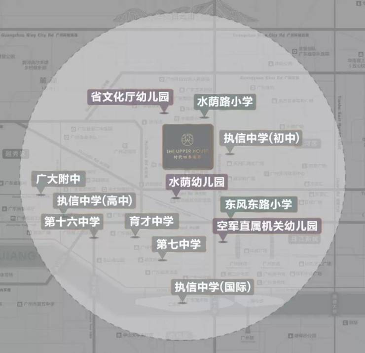 在时代四季奕居附近,便拥有水荫幼儿园、南部战区空军直属机关幼儿园、水荫路小学、东风东路小学、执信中学等市一级、省一级知名学府。