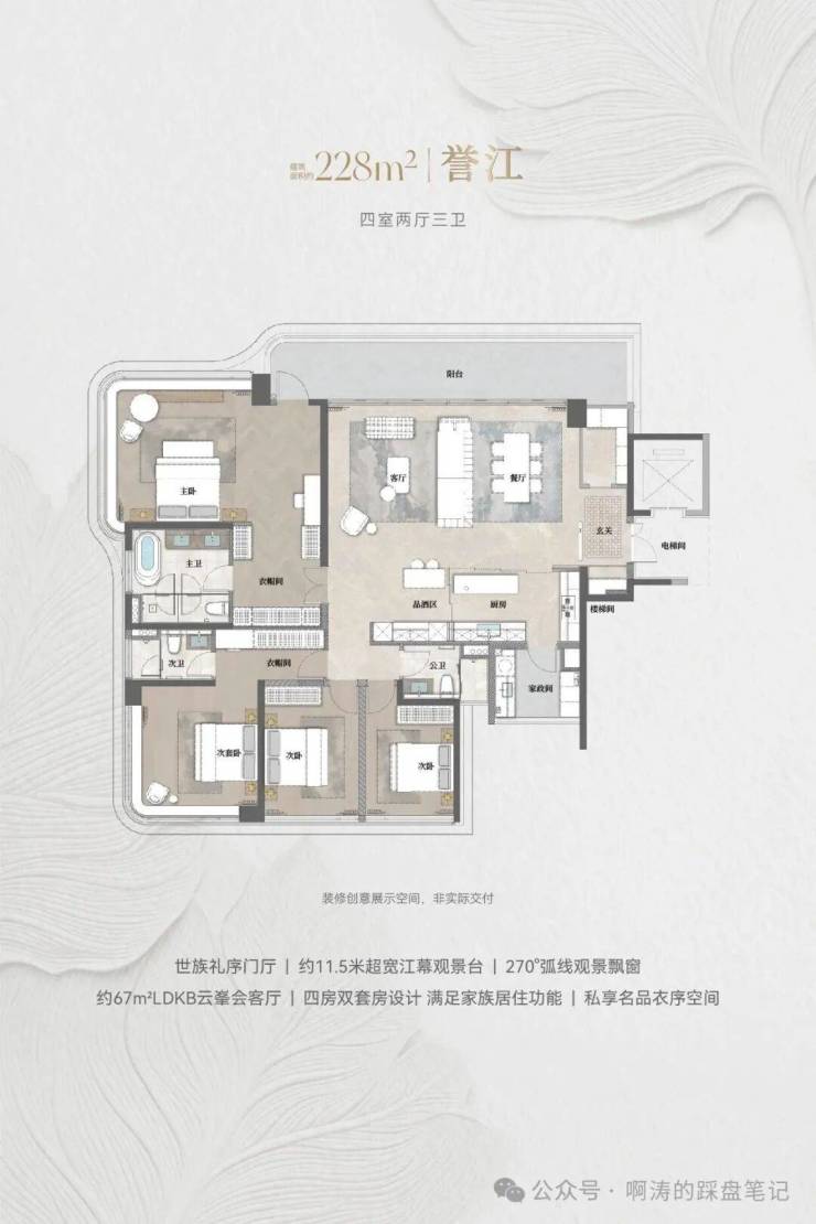 【誉澜】建面约205㎡四室两厅三卫,使用率约100%