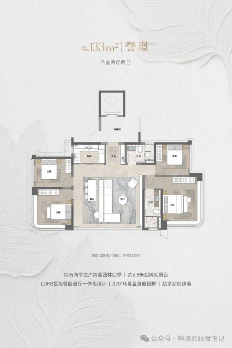 【誉璟】建面约133㎡四室两厅两卫,使用率约100%