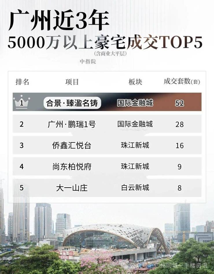 近三年,在5000万级别以上豪宅市场,合景·臻溋名铸累计网签超52套,超过广州·鹏瑞1号和侨鑫汇悦台