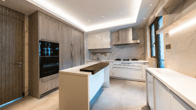 像是厨房十件套就采用了德系美诺的顶级款式,相比其他项目交标的“量产版”,还增加了红酒、咖啡柜配置。