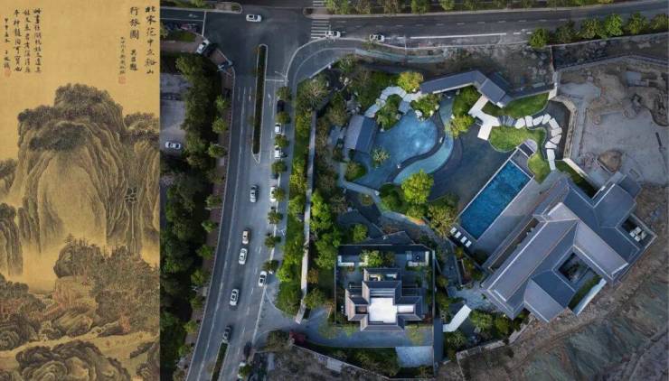 从宋朝山水画中提取五大生活情境作为景观空间的营景依据,形成“山居十苑 · 行山九卷 · 二十四坊”的景观设计格局。