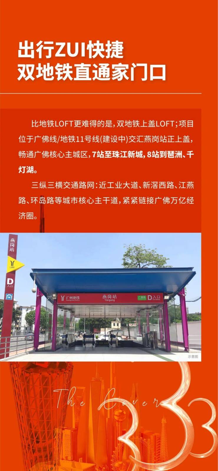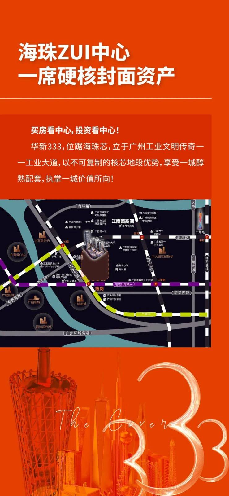 华新·333位踞海珠广纸芯,一梯直连广佛线/11号线交汇的燕岗站;以世界资产门牌号的姿态,为广州力献一座封面作品。项目由约180米甲级写字楼、超3万㎡商业MALL、封面LOFT组成,拥有海珠惟一住宅式LOFT产品,面积涵盖33-58㎡。