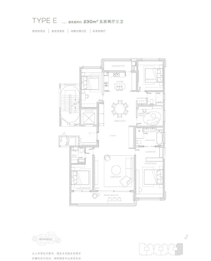观景双阳台-高定双套间-私家电梯厅-双洄游动线