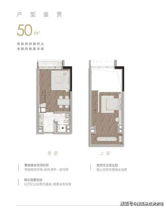 项目采用公建化外立面设计,拥有270°IMAX环幕观景视野。每户均配备大尺度面宽阳台,采光面积超过20米。地上地下双落客大堂设计,带来星级酒店般的奢华体验。此外,项目还提供约50至80平方米的小户型资产,适合商务办公和居住使用,总价仅需175万元起。