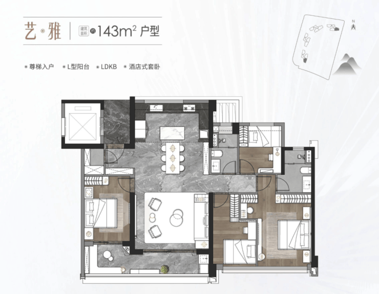 143㎡户型同样尊梯入户,L 型阳台增加了空间的灵动性,LDKB 设计让公共空间更加开阔,酒店式套卧提升了居住的舒适度。⭐温馨提示:本项目暂不接受临时到访,过来参观样板房请记得提前来电预约!