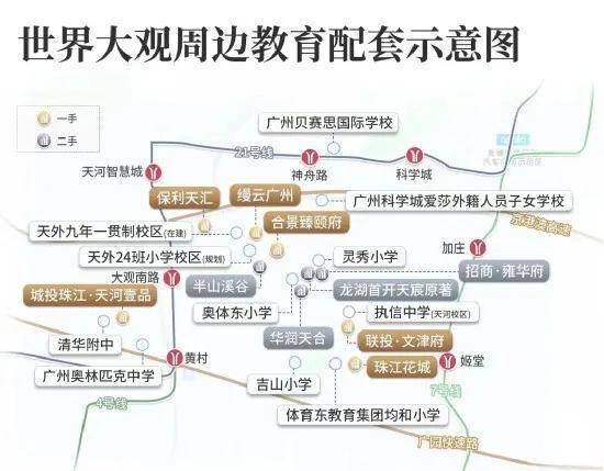 周边荟萃五大省级中学——清华附中、执信中学、天河外国语学校、广州中学、广州岭南中学(暂定名)