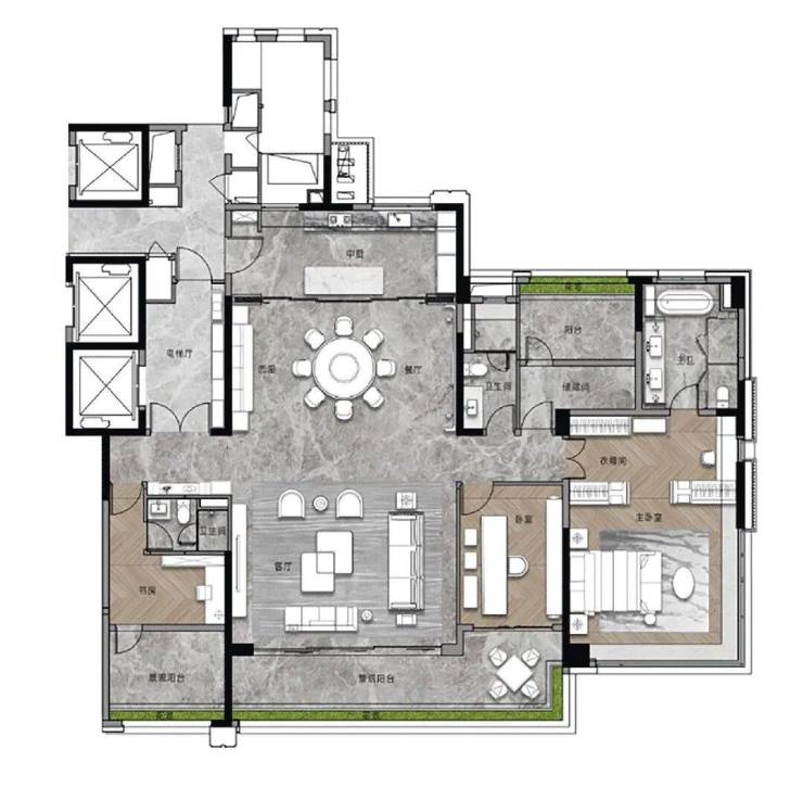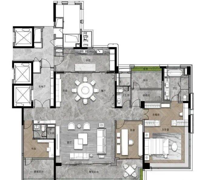 我们再来看看此次加推的268平的大面积户型,作为项目的旗舰,暗藏着哪些巧妙的设计?