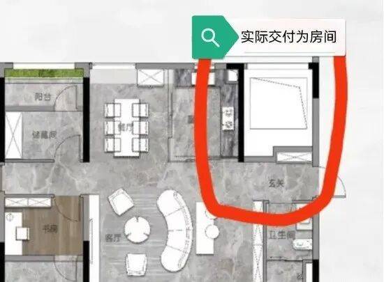 重点说一下125平这个户型,右上角空白处实际交付也是一个房间