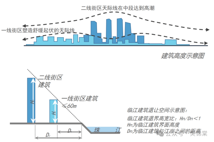 更狠的是,这个设计还踩中了“政策绝版”的红利。2018年广州就规定,珠江两岸临江第一排建筑高度不能超过60米,退距至少100-200米。