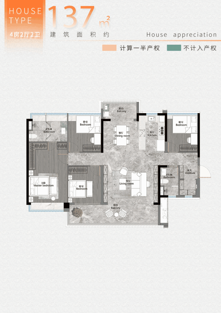 全空间高配!每个空间都有开敞的景观面,全屋丰盈的收纳系统,也能承载全家人的需求。
