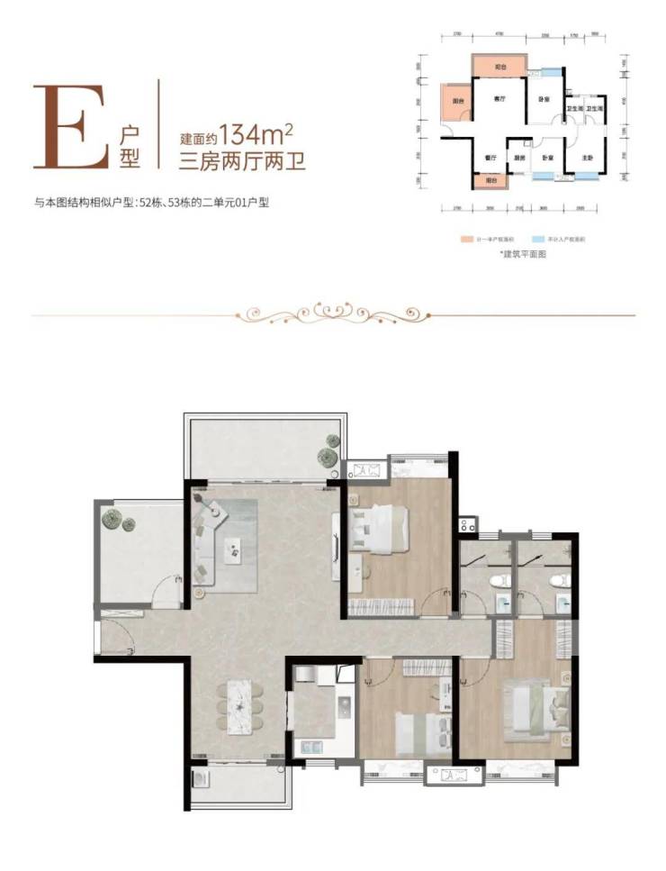 | 约134㎡ 3房2厅2卫 |南北通透奢阔户型,彰显生活品质,四面全明采光设计,感受阳光满屋,约4.7m大开间客厅,尊崇品位人生,主卧独立衣帽间,私享静谧体验