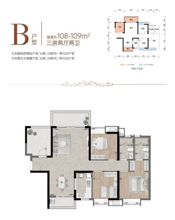 | 约109㎡ 3房2厅2卫 |南北双向阳台,悦享对流清风,入户多功能间,满足个性需求,约4m开间客厅,社交大有可为,主卧套间设计,尊享私密生活