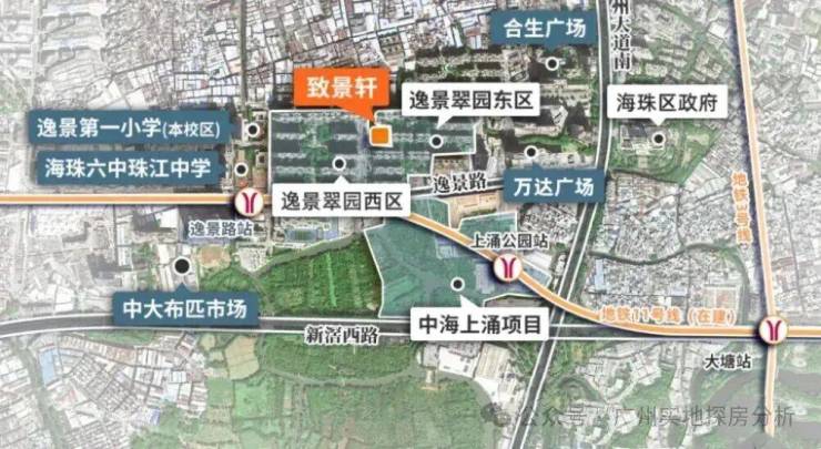 项目拥有双向稀缺景观,北望可见珠江新城的繁华与广州塔的独特魅力,南拥万亩绿境,海珠湿地公园的自然美景一揽无余。同时项目周边还有上涌果树公园、海珠区儿童公园环绕,为居民提供了丰富的休闲空间。
