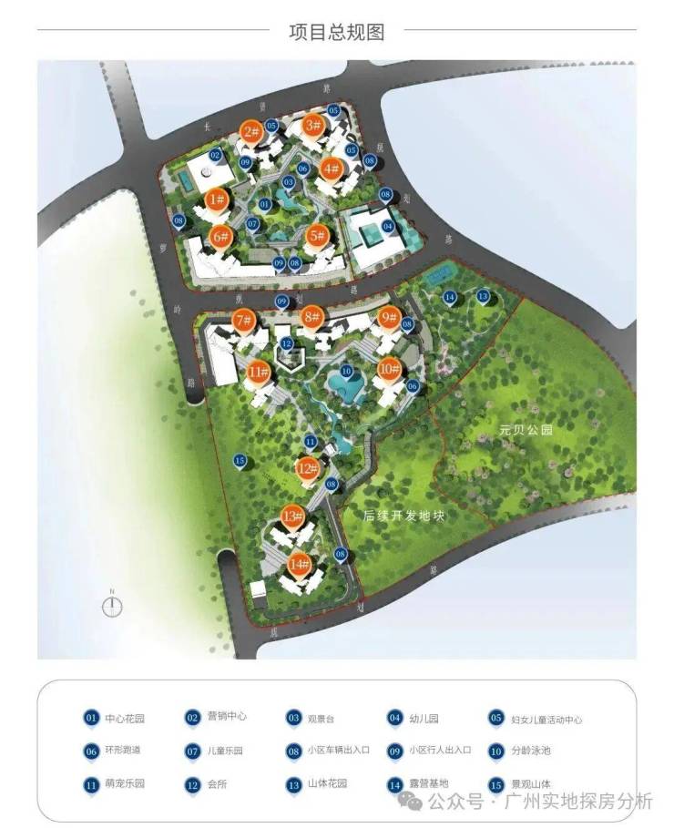 一共规划了14栋住宅,分南北地块开发。