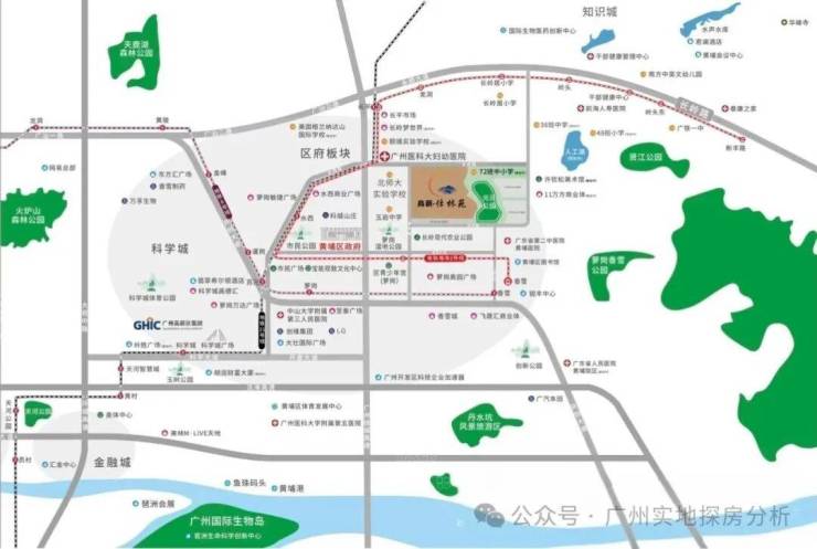 周边萝岗万达广场至泰广场、萝岗敏捷广场、约29万㎡敏捷科技创新综合体建设中、约8万㎡长岭梦世界建设中等。