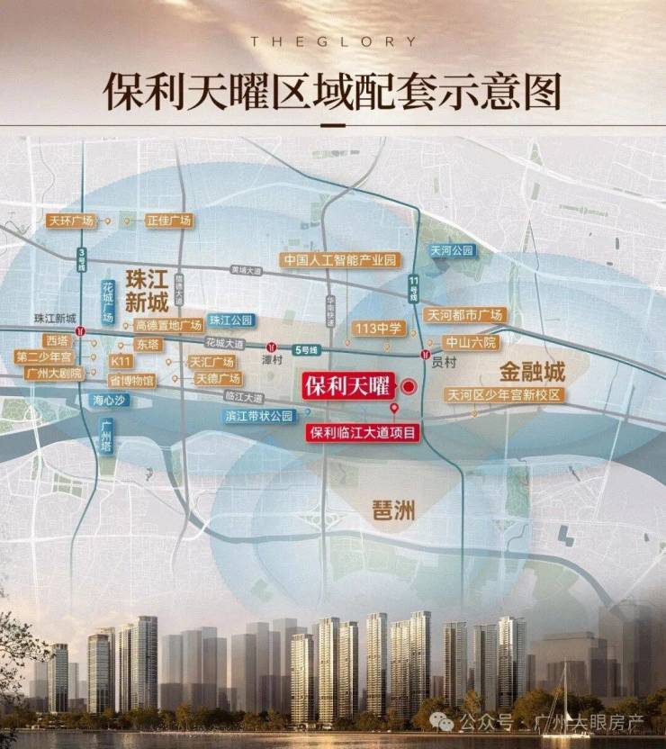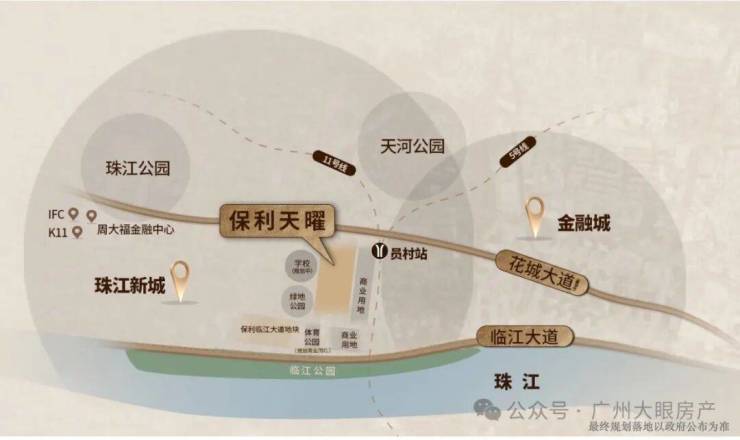 尤为值得一提的是,这是天河比较难得的靠近地铁站的盘,地块东北侧距离地铁5号线与11号线交汇的员村站仅150m,5号线+11号线可以连通广州最核心的几个商务圈---珠城、琶洲、天河北、白鹅潭等等,通达性很强。